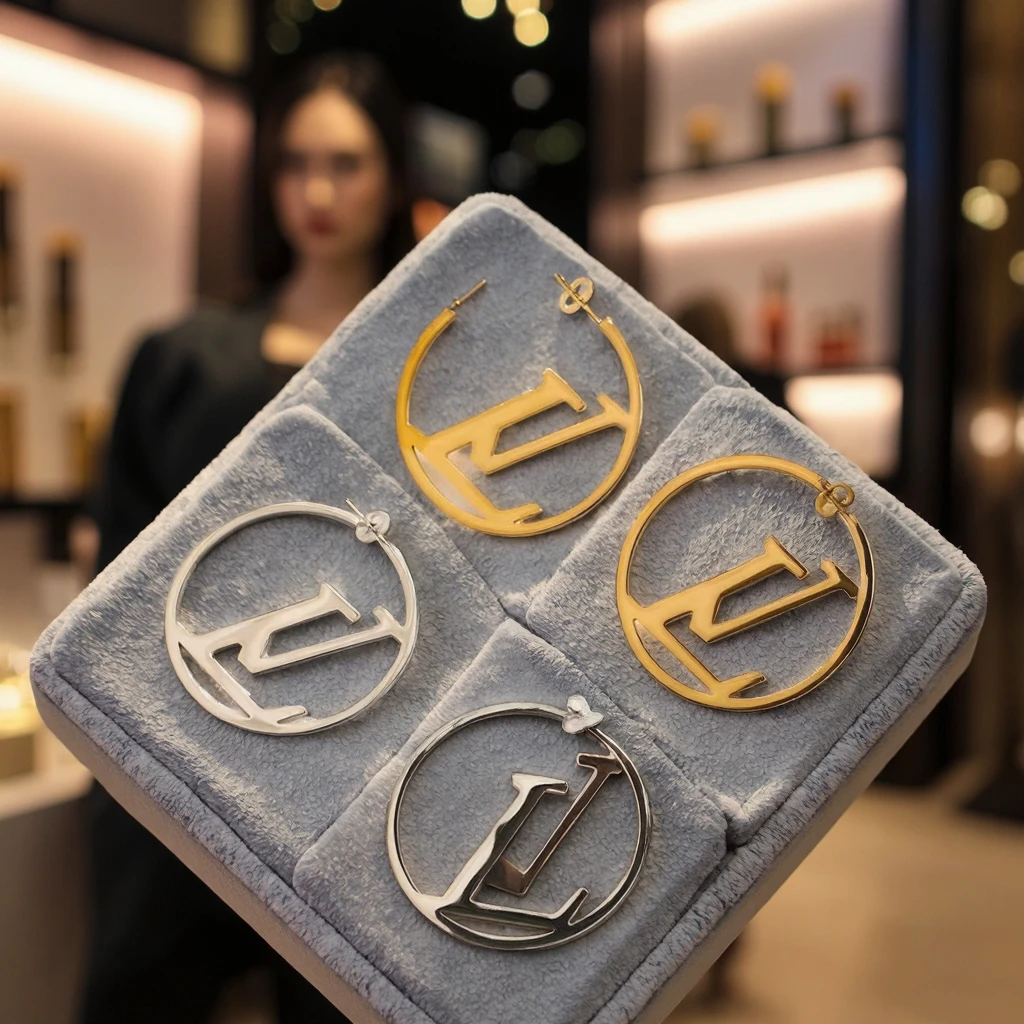 Hot Selling Fashion Brand 5cm 18k Gold Plated V Latest Style Aretes Designer Big Earrings